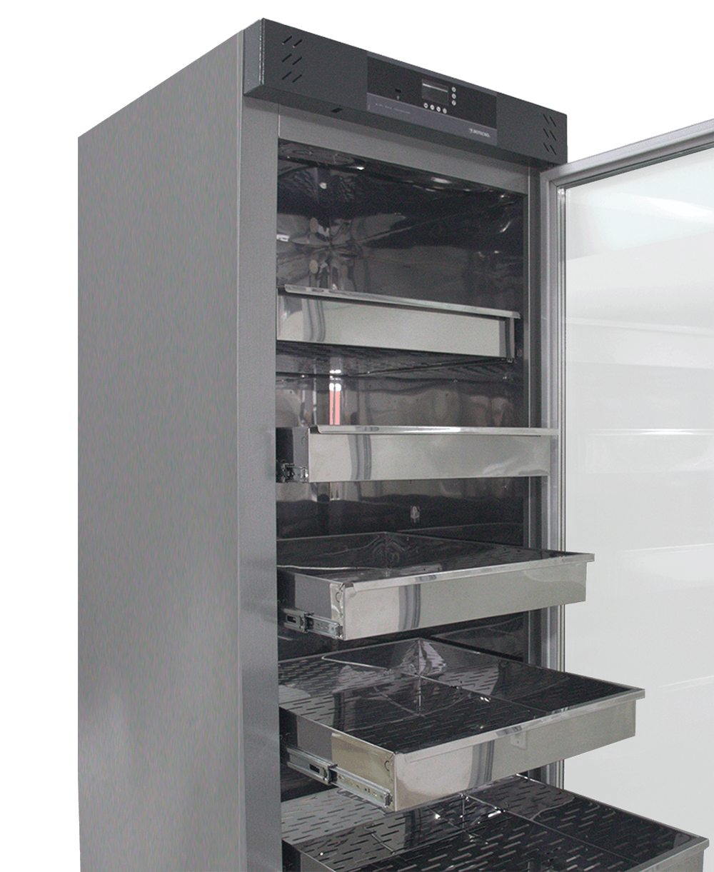 The forced-air circulation ensure perfect homogenization of the temperature at all points inside the equipment. It shuts down when the door is opened.