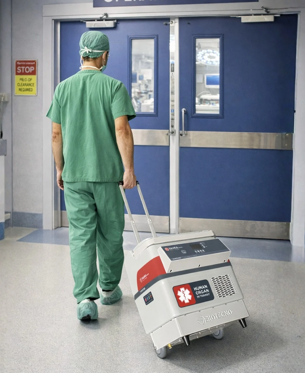 To ensure thermal homogeneity, the system incorporates forced internal ventilation, injected polyurethane insulation, and a silicone-sealed lid. Among its technical features are multiple NTC sensors, including one positioned next to the organ, allowing precise monitoring of the actual tissue temperature.