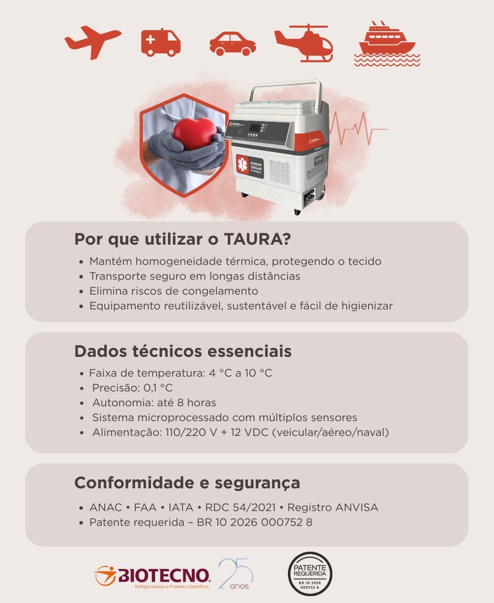 The equipment offers advantages such as PWM control, redundant sensors, an integrated safety system, alarm history, remote management software, Bluetooth connectivity, and compliance with regulatory standards (ANVISA and FDA), offering a sustainable and low-cost alternative per use compared to traditional methods using ice and disposable devices currently on the market.