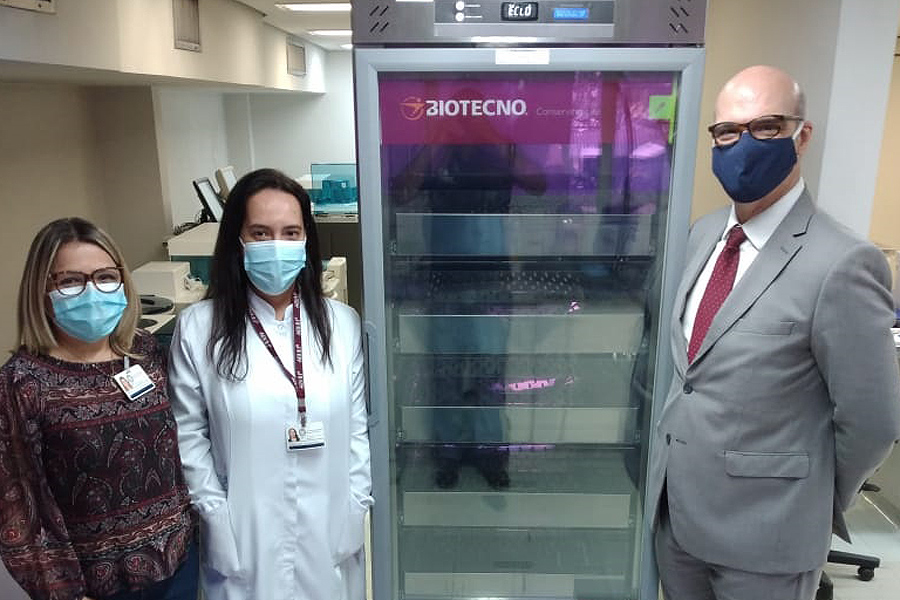 O refrigerador científico modelo BT 1100 560, com capacidade para 560 litros, é destinado ao hemocentro da Instituição, que há muito tempo carecia de uma solução adequada para o armazenamento correto de reagentes e medicamentos.